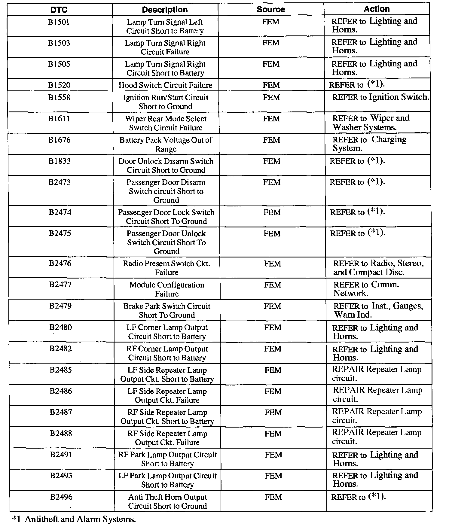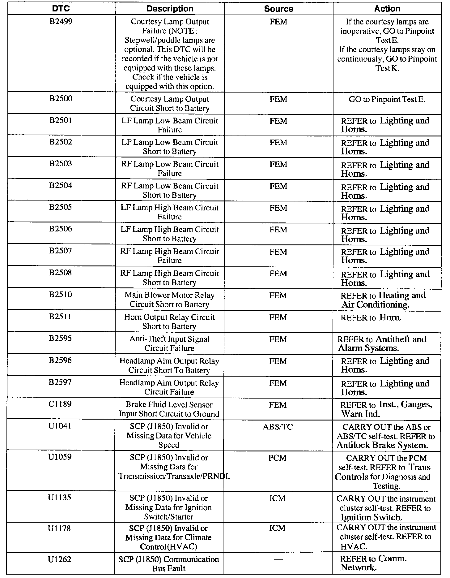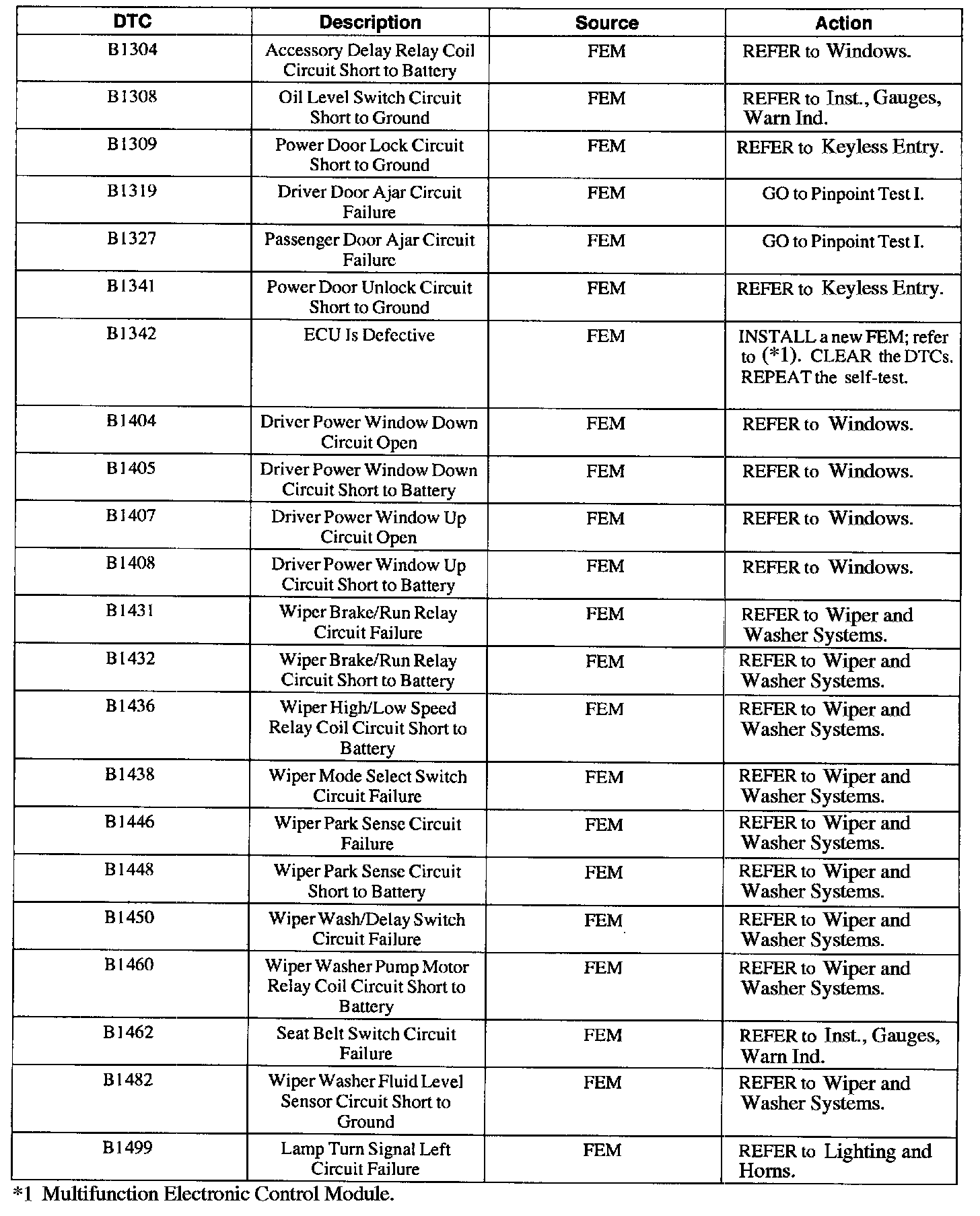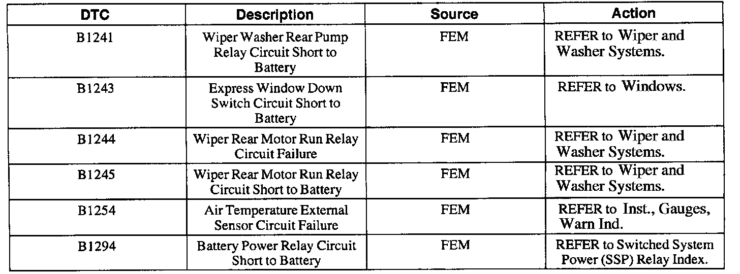 FEM Diagnostic Trouble Code (DTC) Index