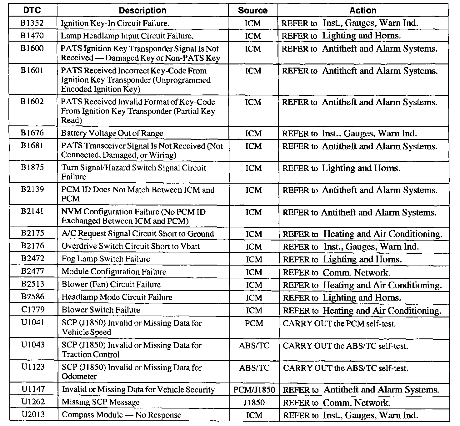 Instrument Cluster Diagnostic Trouble Code Index