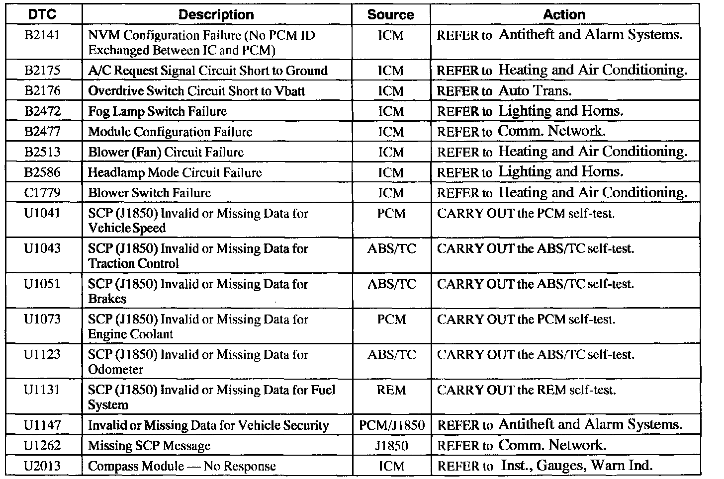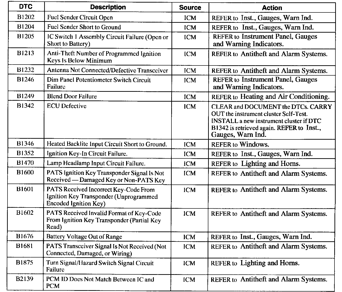 Instrument Cluster Diagnostic Trouble Code (DTC) Index