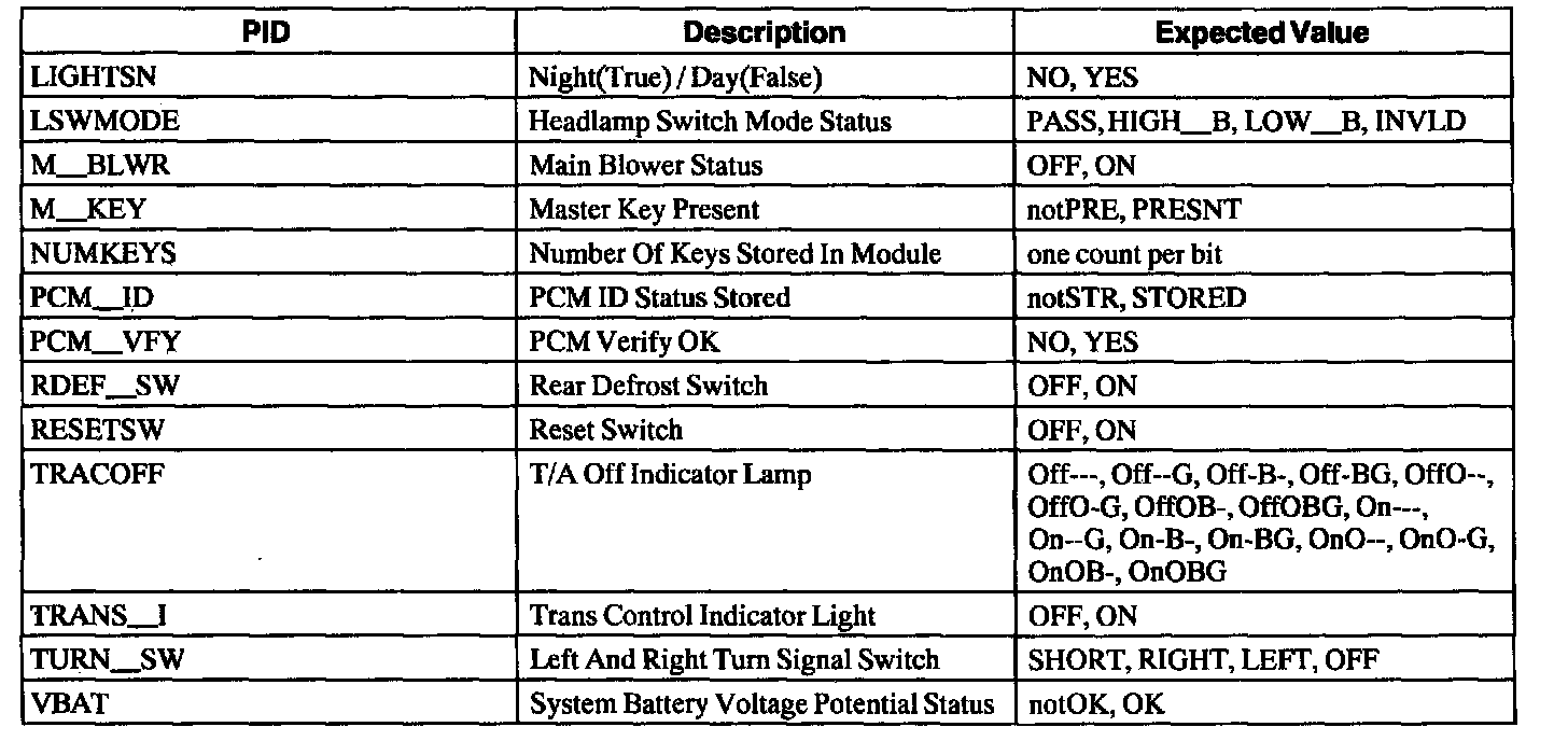 Instrument Cluster Parameter Identification (PID) Index