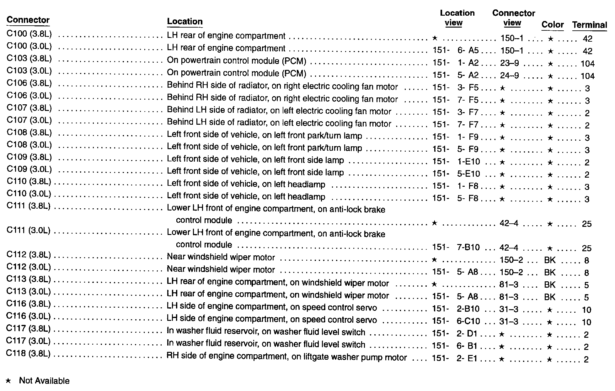 Windstar V6-3.8L VIN 4