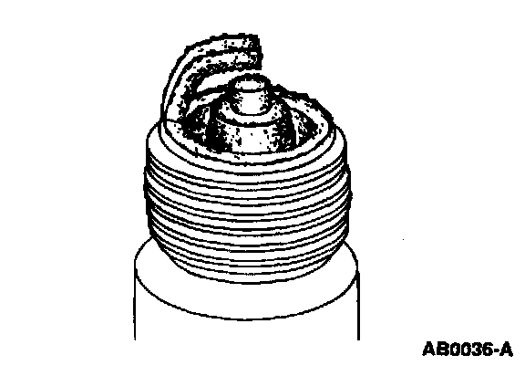- Check for wet, black deposits on the insulator shell bore electrodes, caused by excessive oil entering the combustion chamber through worn rings and pistons, excessive valve-to-guide clearance or worn or loose bearings.