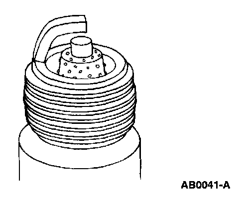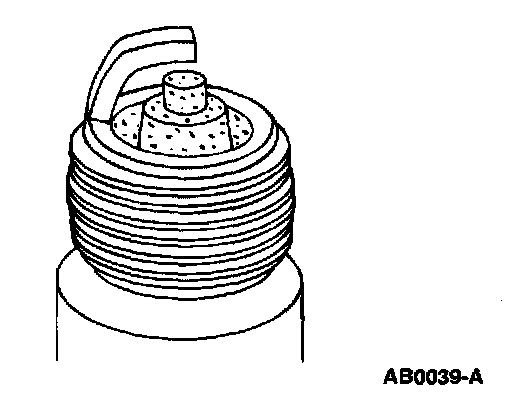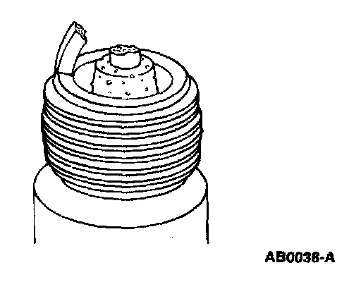 8. Inspect for overheating, identified by white or light gray-brown spots and with bluish-burnt appearance of electrodes. This is caused by engine overheating, wrong type of fuel, loose spark plugs, spark plugs with an incorrect heat range, low fuel pump pressure or incorrect ignition timing.