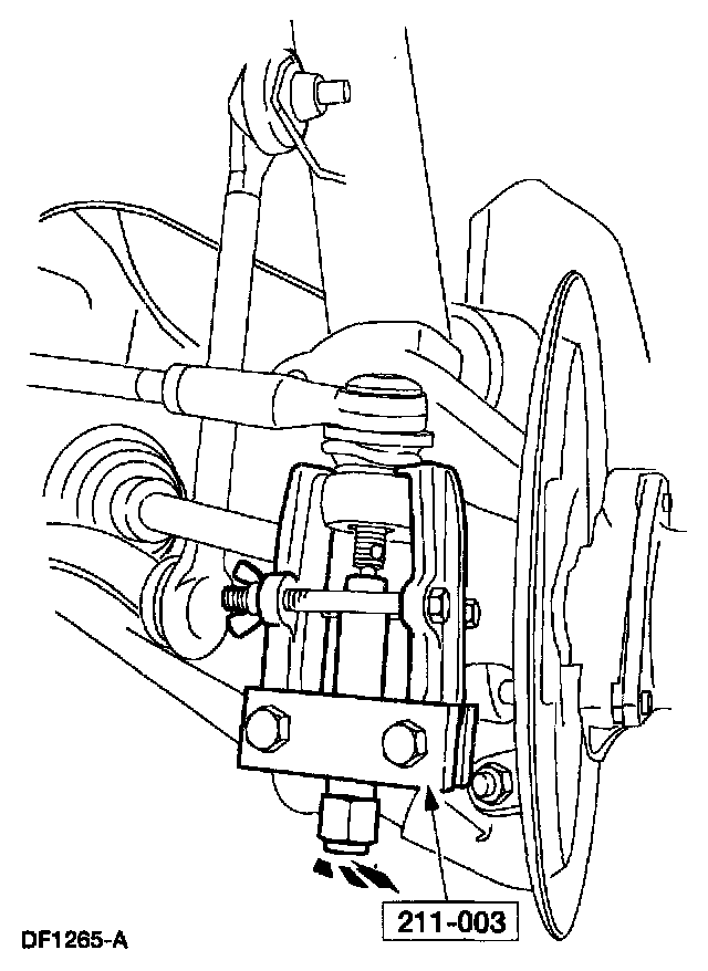 9. Remove and discard the front stabilizer bar link nut and separate the front stabilizer bar link.