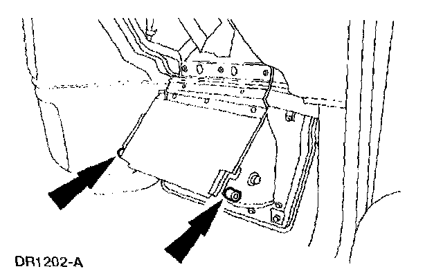 ^ VEHICLE SENSOR ORIENTATION IS CRITICAL FOR CORRECT SYSTEM OPERATION. IF A VEHICLE EQUIPPED WITH AN AIR BAG SUPPLEMENTAL RESTRAINT SYSTEM (SRS) IS INVOLVED IN A COLLISION, INSPECT THE SENSOR MOUNTING BRACKET AND WIRING PIGTAIL FOR DEFORMATION. REPLACE AND PROPERLY POSITION THE SENSOR OR ANY OTHER DAMAGED SUPPLEMENTAL RESTRAINT SYSTEM (SRS) COMPONENTS WHETHER OR NOT THE AIR BAG IS DEPLOYED.