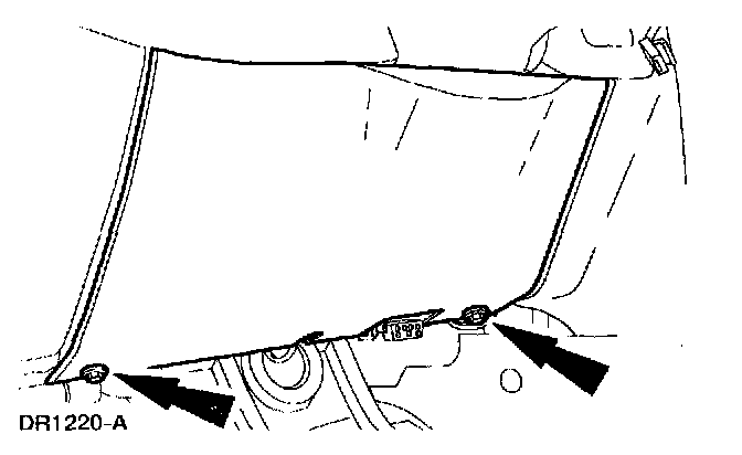 ^ TO AVOID ACCIDENTAL DEPLOYMENT AND POSSIBLE PERSONAL INJURY, THE BACKUP POWER SUPPLY MUST BE DEPLETED BEFORE REPAIRING OR REPLACING ANY FRONT OR SIDE AIR BAG SUPPLEMENTAL RESTRAINT SYSTEM (SRS) COMPONENTS AND BEFORE SERVICING, REPLACING, ADJUSTING OR STRIKING COMPONENTS NEAR THE FRONT OR SIDE AIR BAG SENSORS, SUCH AS DOORS, INSTRUMENT PANEL, CONSOLE, DOOR LATCHES, STRIKERS, SEATS AND HOOD LATCHES.