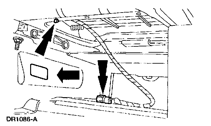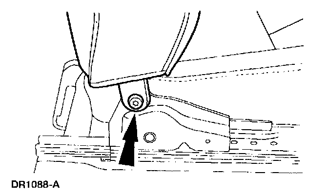 4. Remove the retaining clip at the front, prying between the nut head and the seat frame, and remove the lower seat trim panel. Remove the other side.