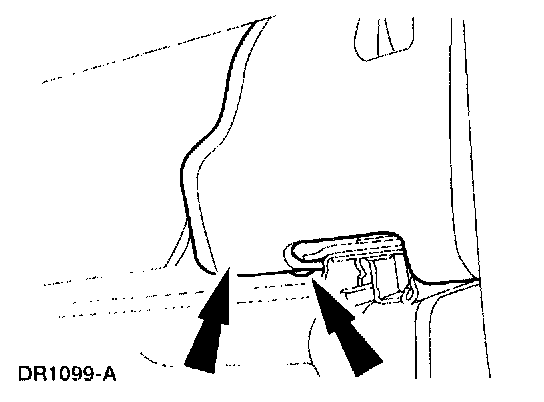 7. Remove the two pushpins retaining the side air bag wire harness to the seat bottom and route it through the seat bottom.
