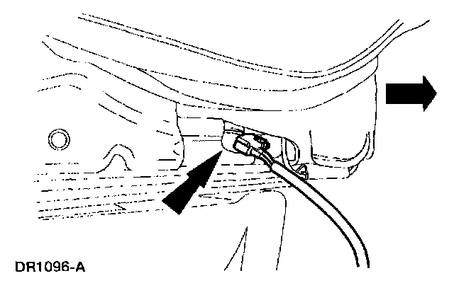 ^ VEHICLE SENSOR ORIENTATION IS CRITICAL FOR CORRECT SYSTEM OPERATION. IF A VEHICLE EQUIPPED WITH AN AIR BAG SUPPLEMENTAL RESTRAINT SYSTEM (SRS) IS INVOLVED IN A COLLISION, INSPECT THE SENSOR MOUNTING BRACKET AND WIRING PIGTAIL FOR DEFORMATION. REPLACE AND PROPERLY POSITION THE SENSOR OR ANY OTHER DAMAGED SUPPLEMENTAL RESTRAINT SYSTEM (SRS) COMPONENTS WHETHER OR NOT THE AIR BAG IS DEPLOYED.