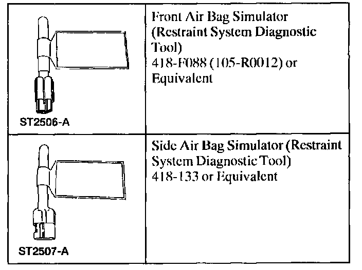 WARNING: THE RESTRAINT SYSTEM DIAGNOSTIC TOOLS ARE FOR RESTRAINT SYSTEM SERVICE ONLY. REMOVE FROM VEHICLE PRIOR TO ROAD USE. FAILURE TO REMOVE COULD RESULT IN INJURY AND POSSIBLE VIOLATION OF VEHICLE SAFETY STANDARDS.