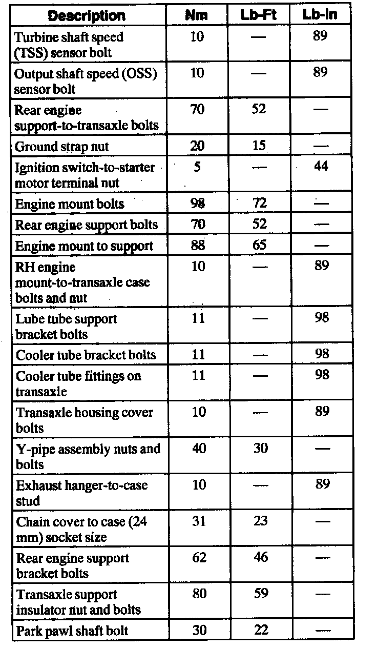 Torque Specifications