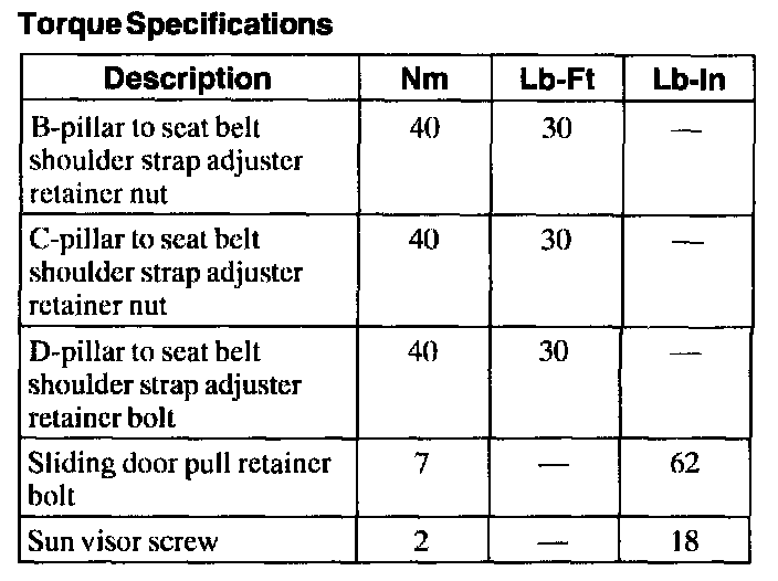 Torque Specifications:
