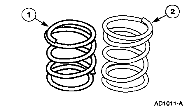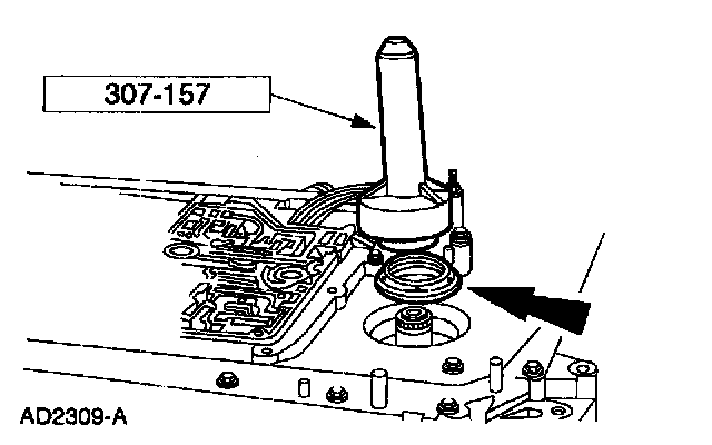 53. CAUTION: The test spring from the overdrive servo rod tool is plain in color and has a shorter free height than the operational spring. Extreme care must be used not to assemble the transaxle using the test spring.