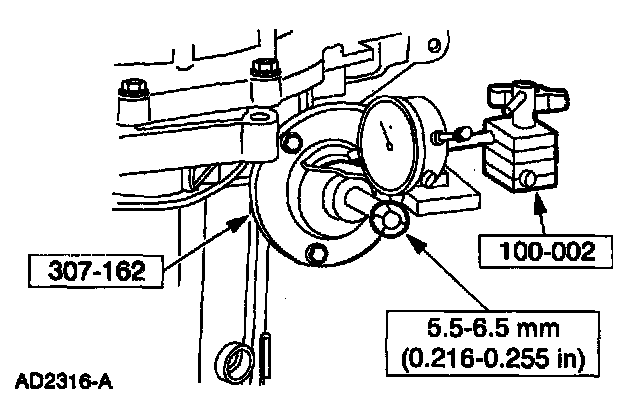 57. Back off the center screw until the piston movement stops and read the dial indicator. The reading should be within specification. If the reading does not match the specification, refer to the overdrive specification chart and determine which overdrive servo rod to use.