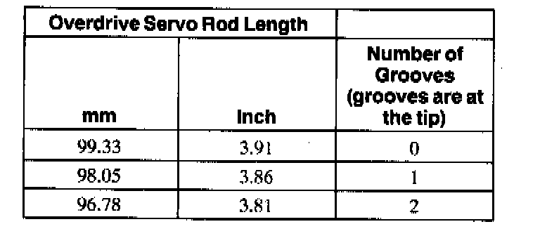 Overdrive Piston Rod Selection Chart