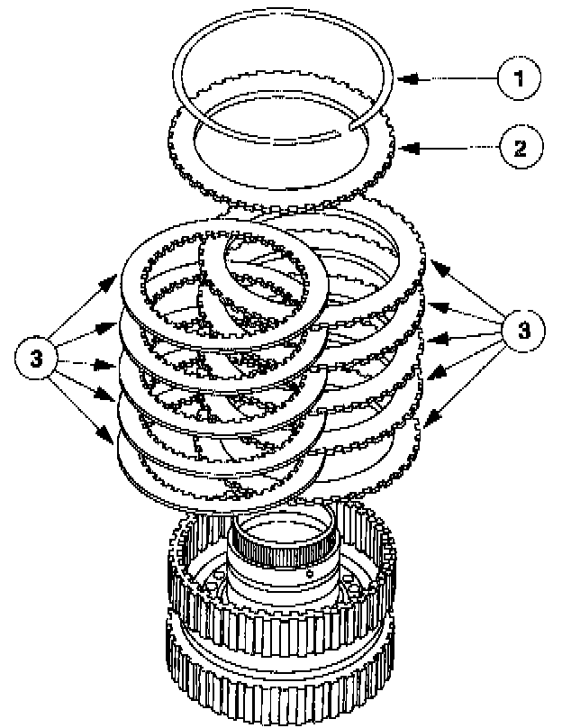 2. CAUTION: Check for wear on inner splines of friction plates. Install new plates if worn.