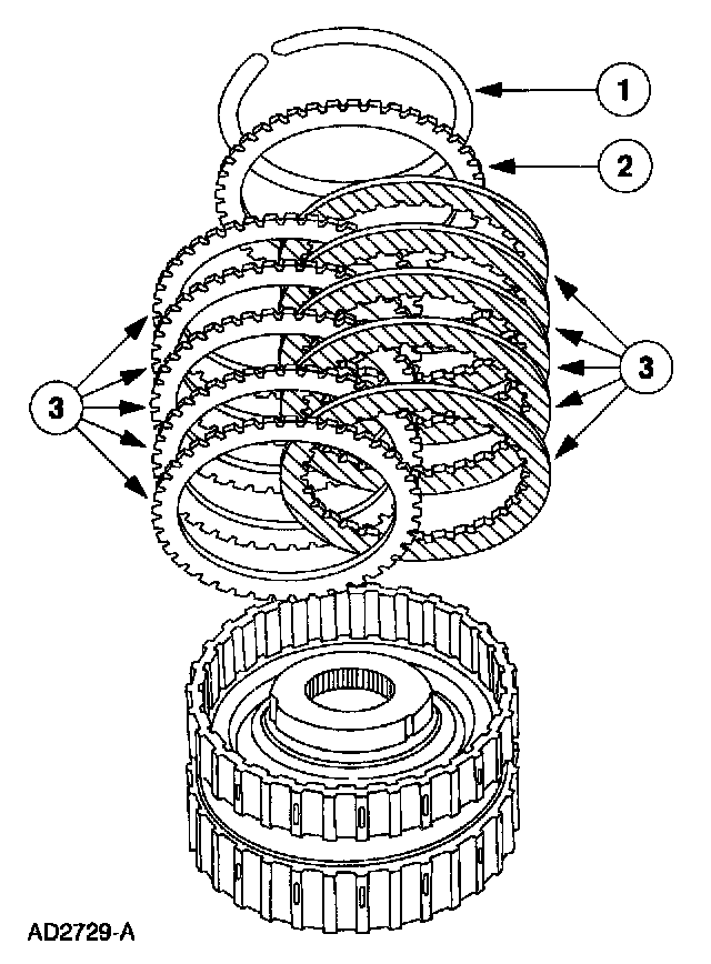 1. Note: The number of clutch plates may vary with application. Remove the intermediate clutch pack.