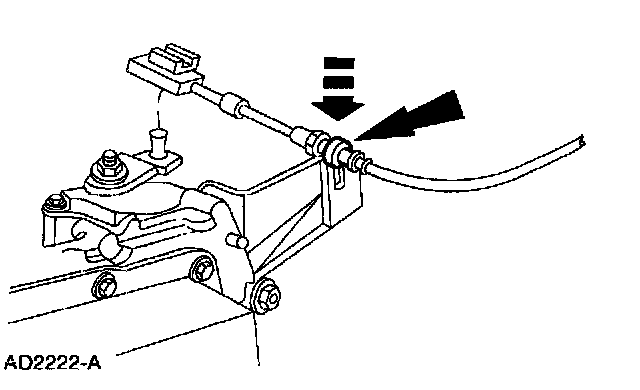 Note: Whenever a steering column, engine or transaxle removal is required, do not remove the shift cable from the retaining brackets. The brackets must be removed with the shift cable attached.