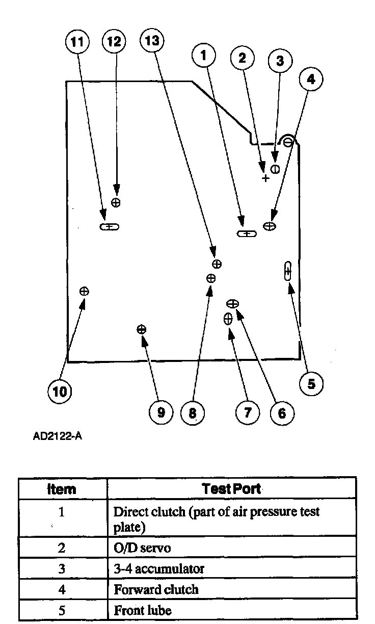 Follow the procedure to determine the location of the inoperative clutch or band by introducing air pressure into the various test plate passages.