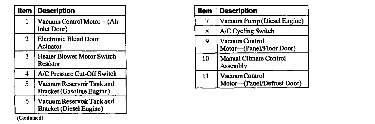 ^ Depending on the heater blower motor switch position, series resistance is added or bypassed in the A/C blower motor circuit to decrease or increase A/C blower motor speed.