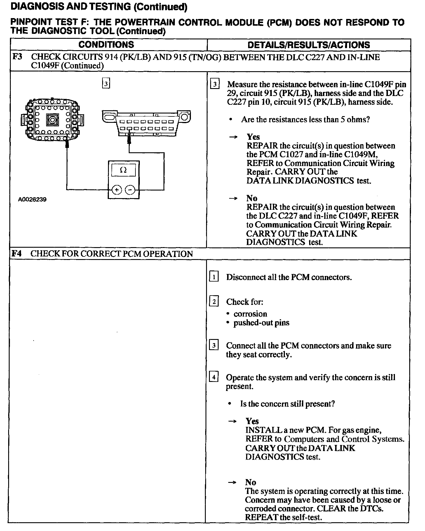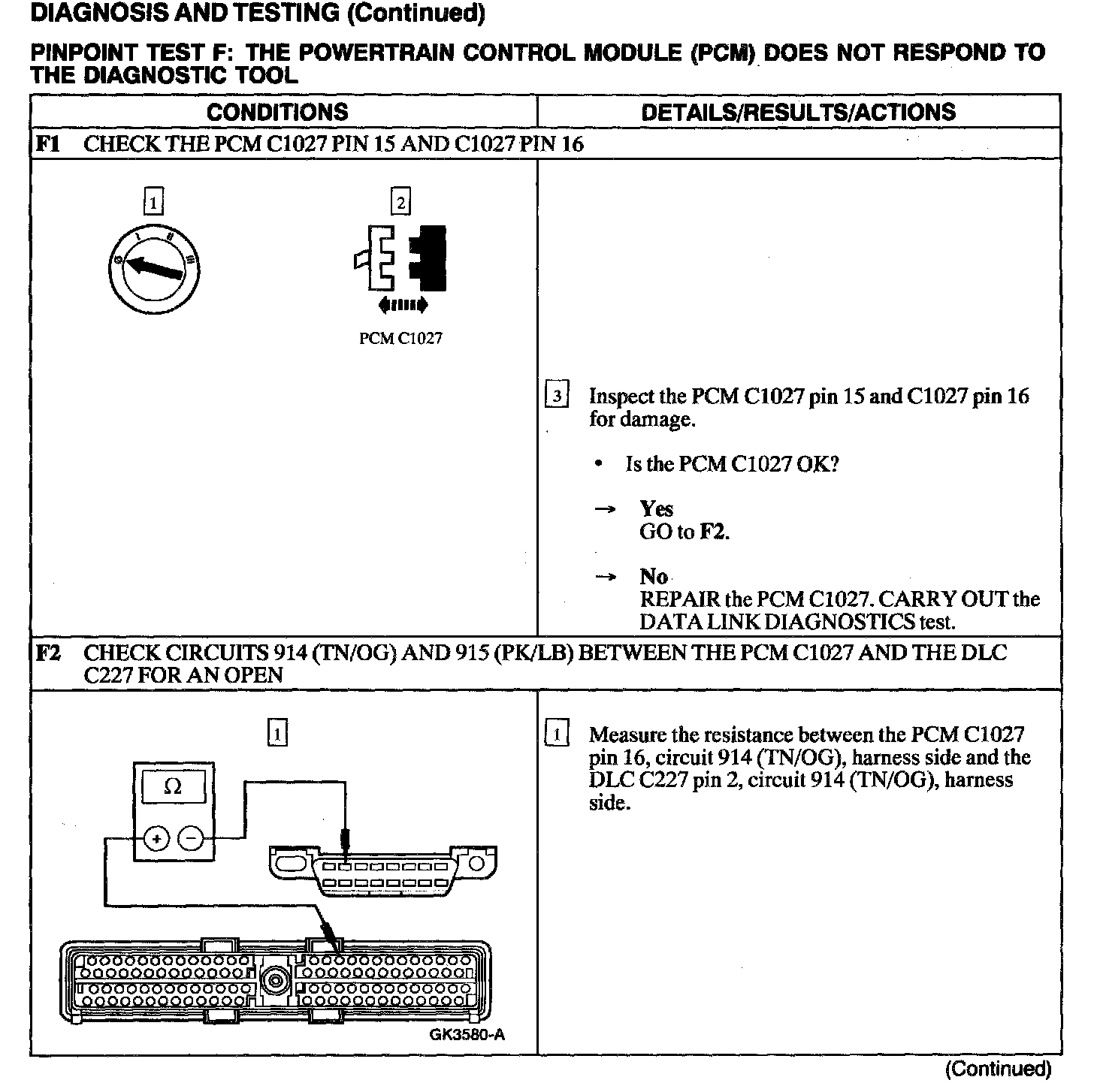 Test F: PCM Does Not Respond To The Diagnostic Tool