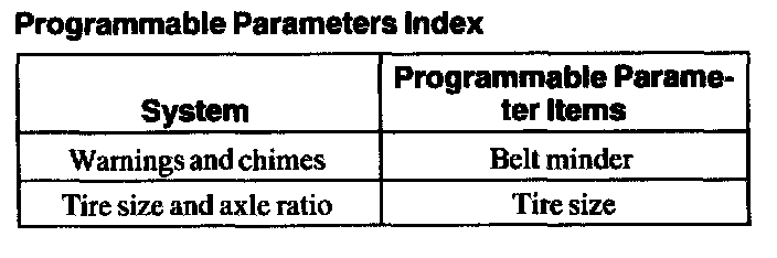 Programmable Parameters Index: