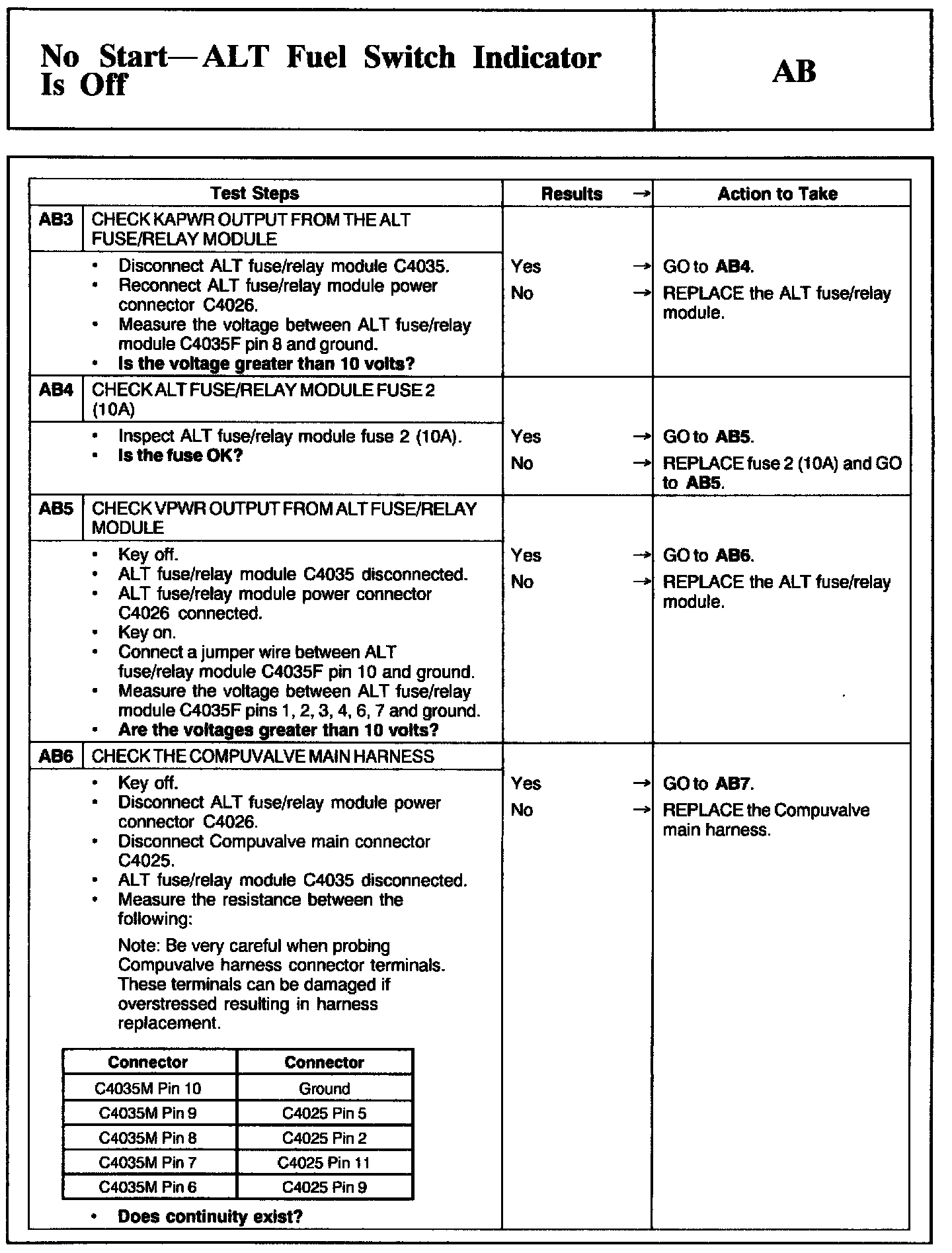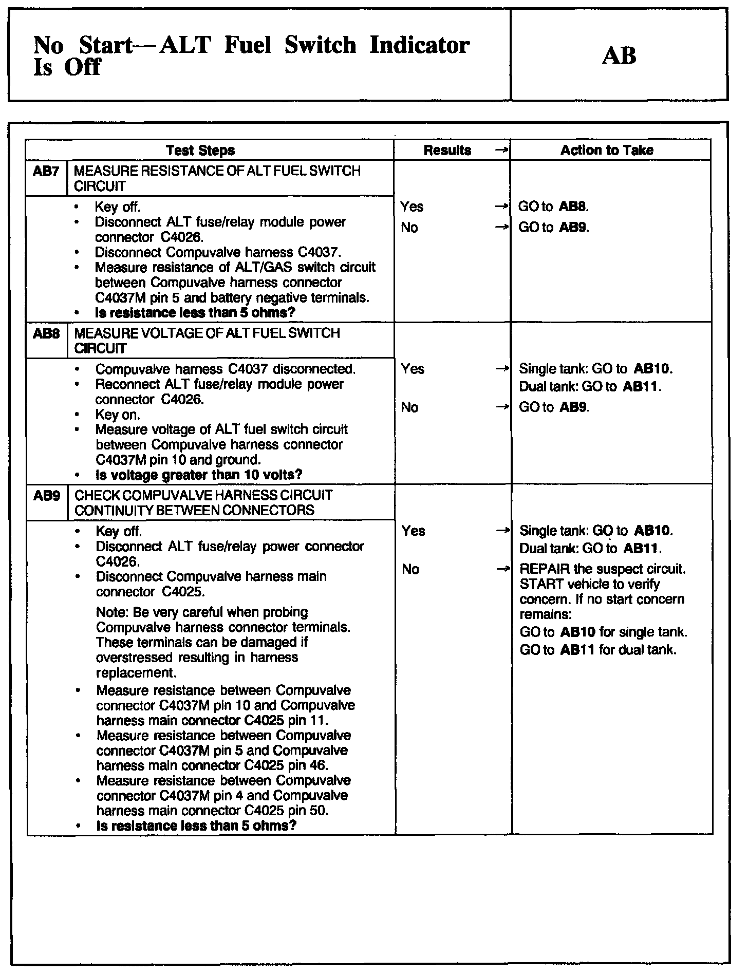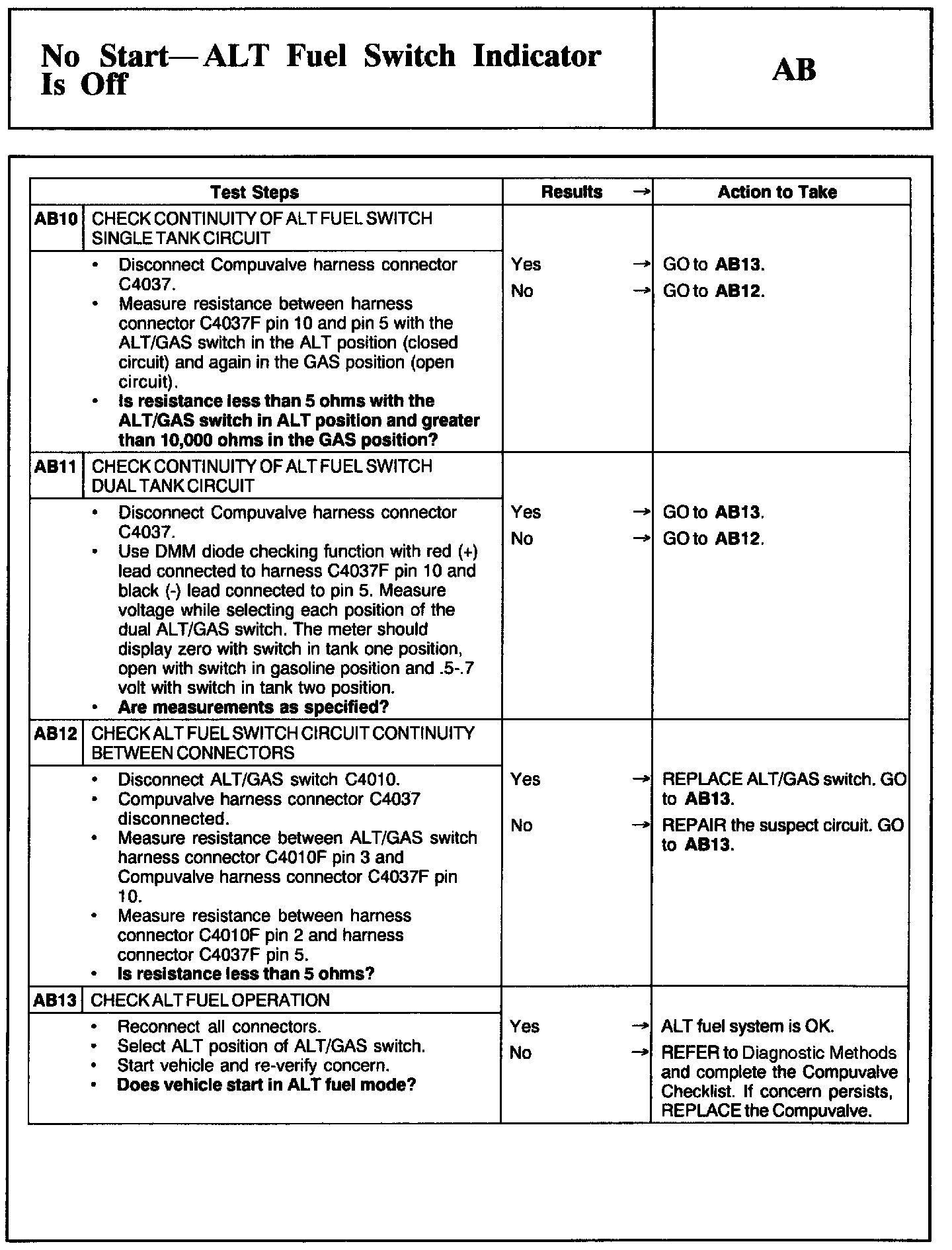 Test AB: No Start - ALT Fuel Switch Indicator Is Off