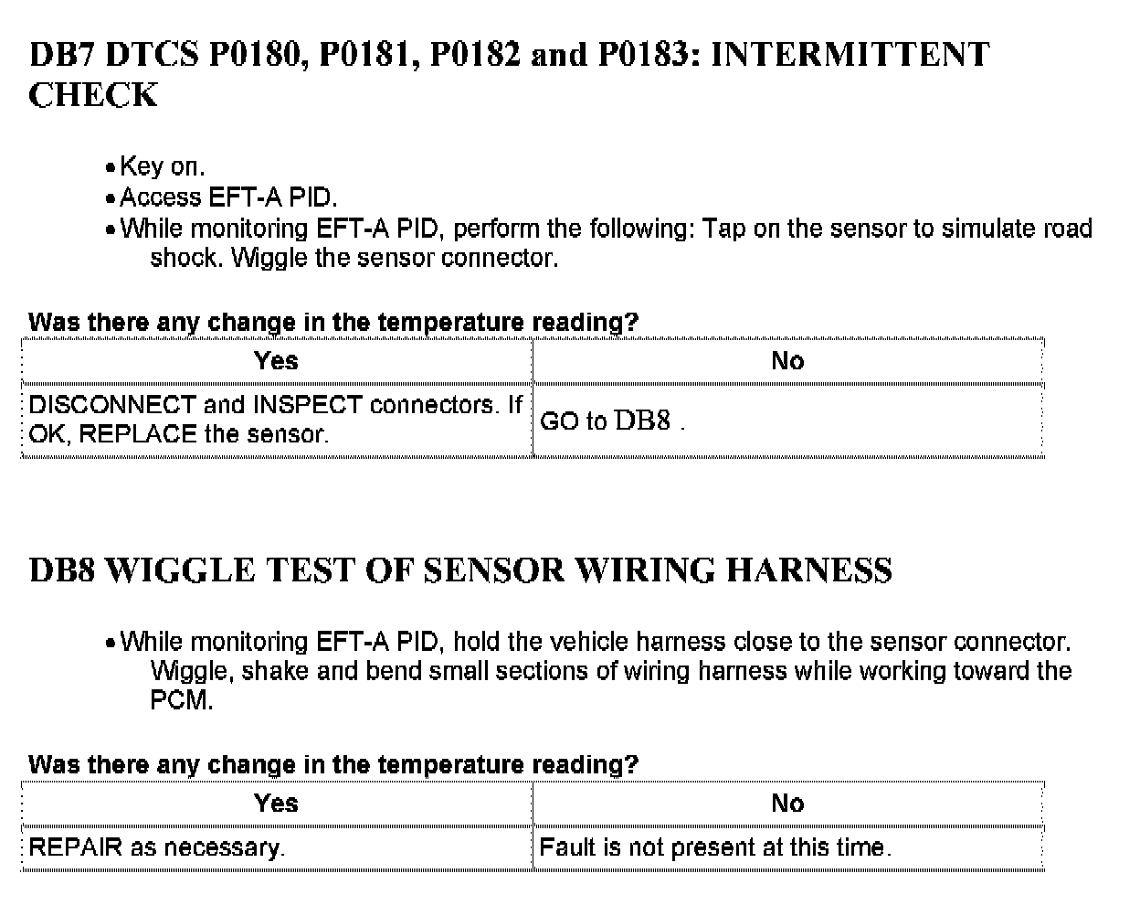 Tests DB: Engine Fuel Temperature (EFT) Sensor