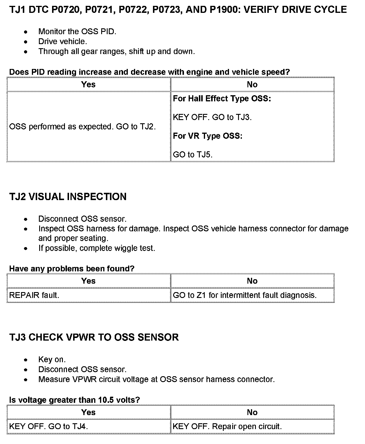 Tests TJ: Output Shaft Speed (OSS) Sensor