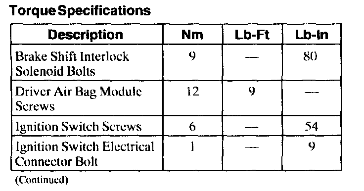 Torque Specifications (Part 1):