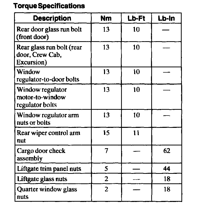 Torque Specifications:
