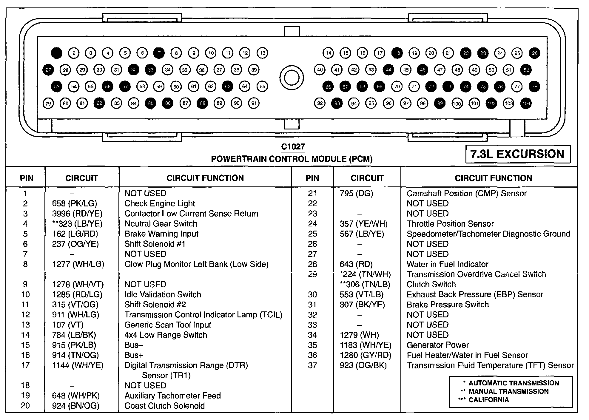 Excursion 2WD V8-7.3L DSL Turbo VIN F