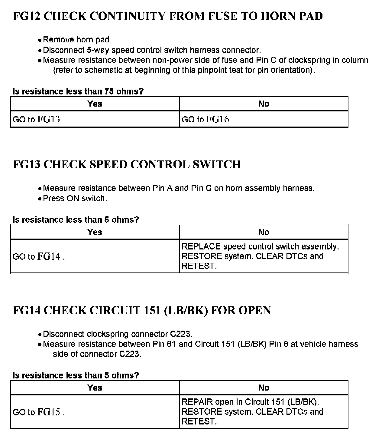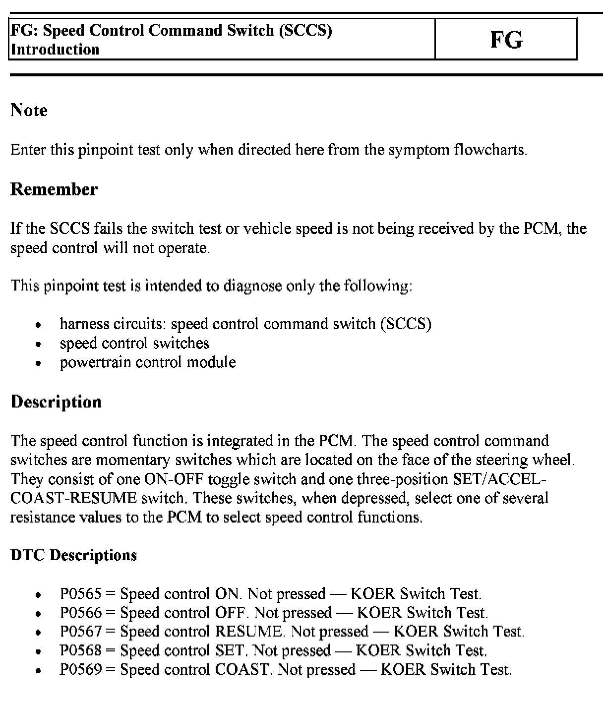 Tests FG: Speed Control Command Switch (SCCS)