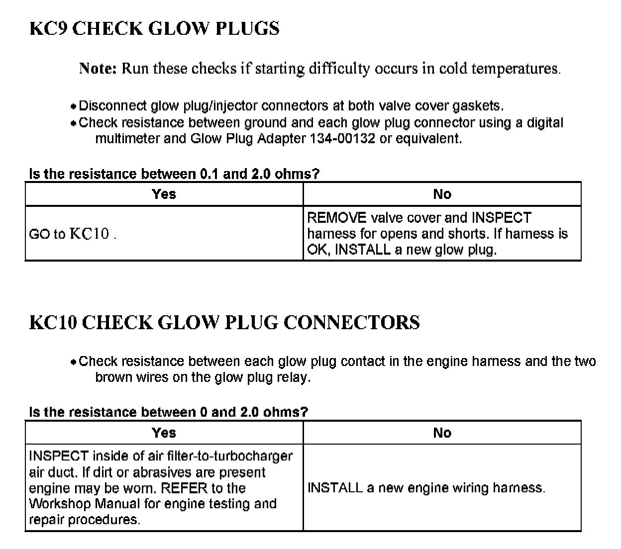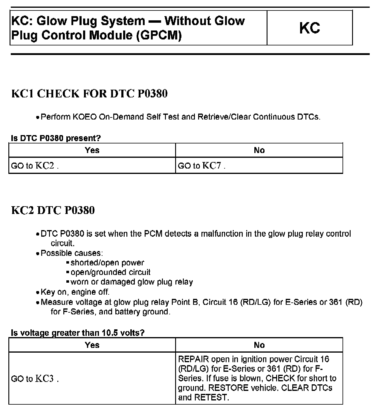 Tests KC: Glow Plug System - Without Glow Plug Control Module (GPCM)