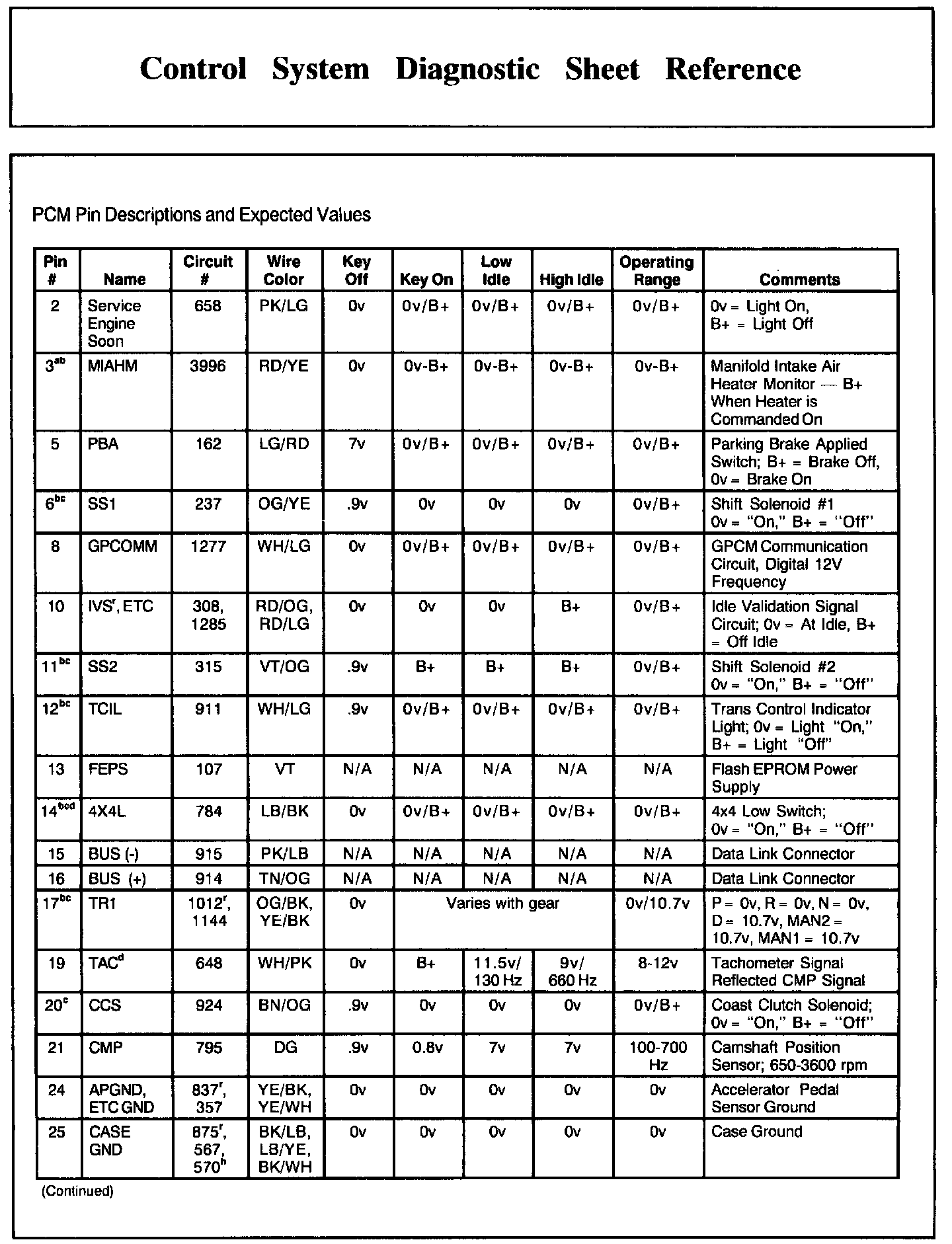 PCM Pin Descriptions And Expected Values, Part 4:
