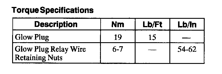 Glow Plug System: Specifications