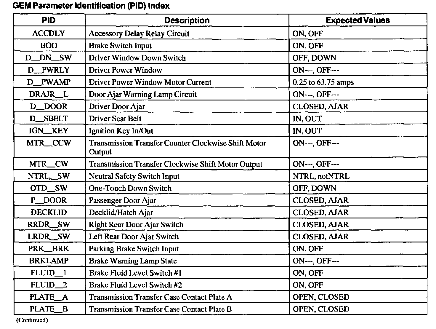 GEM Parameter Identification (PID) Index, Part 1:
