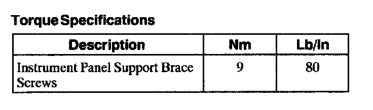 Torque Specifications: