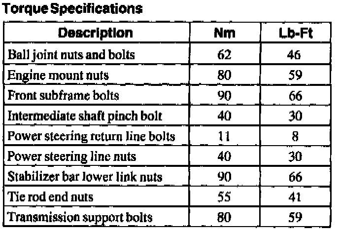 Torque Specifications:
