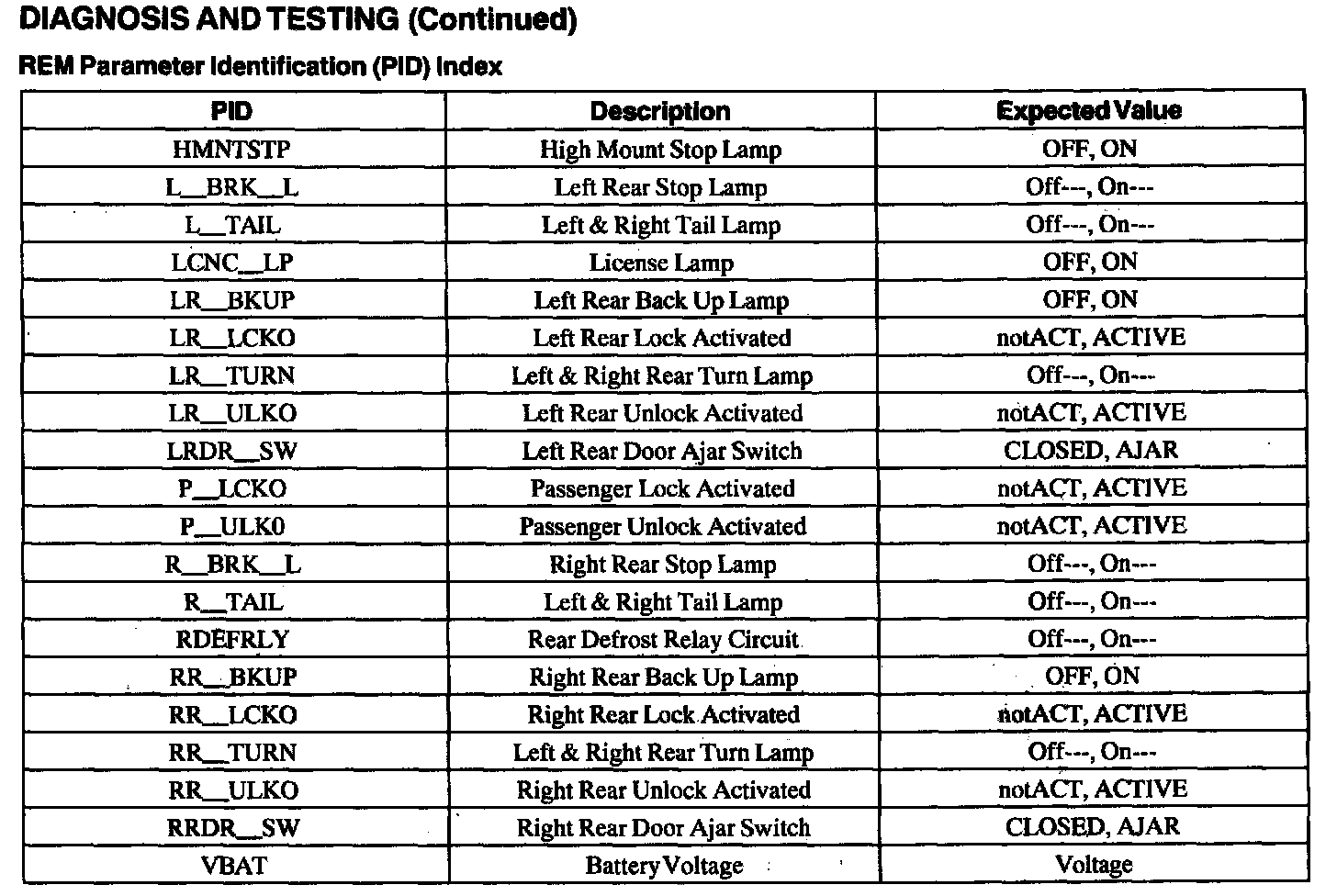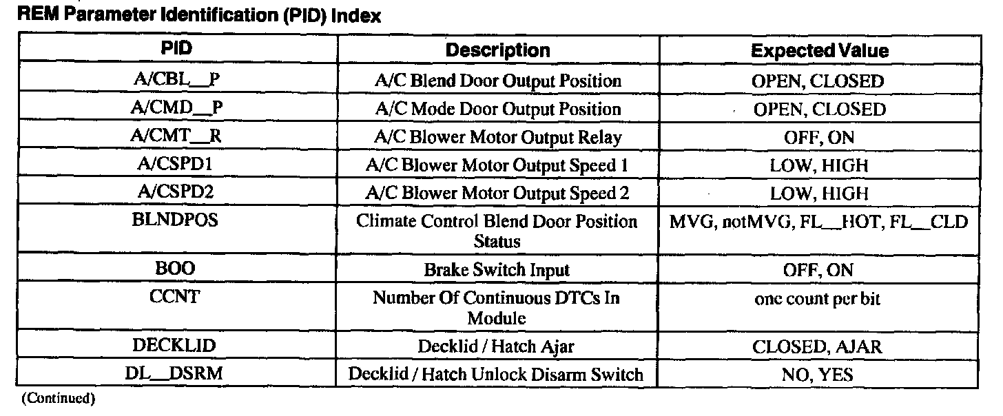 Rear Electronic Module (REM) Parameter Identification Index