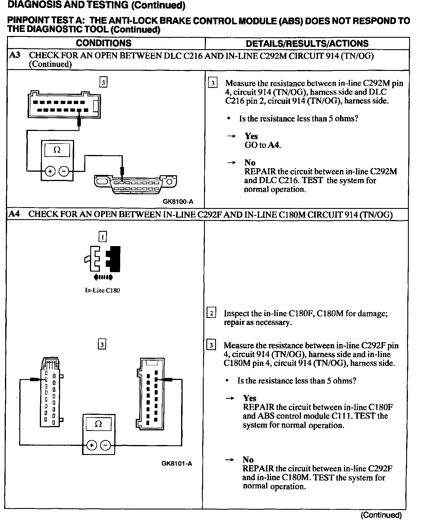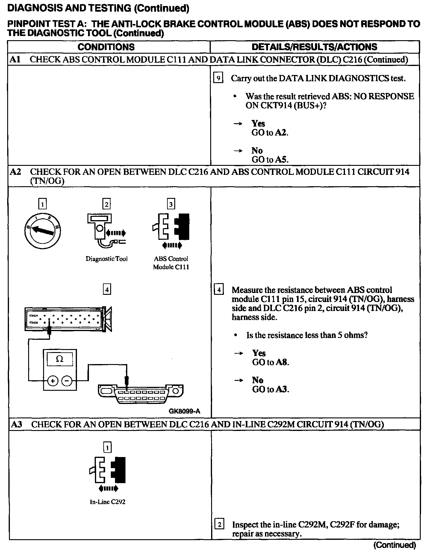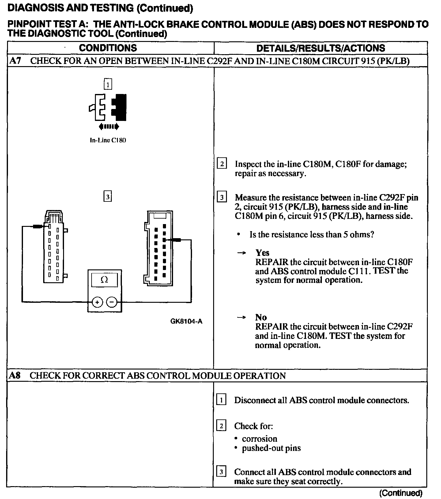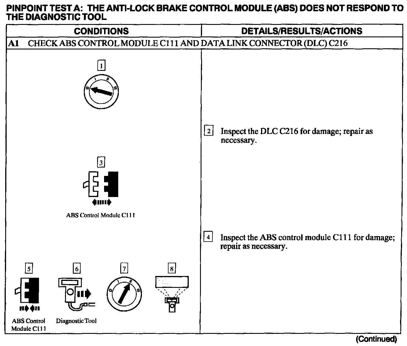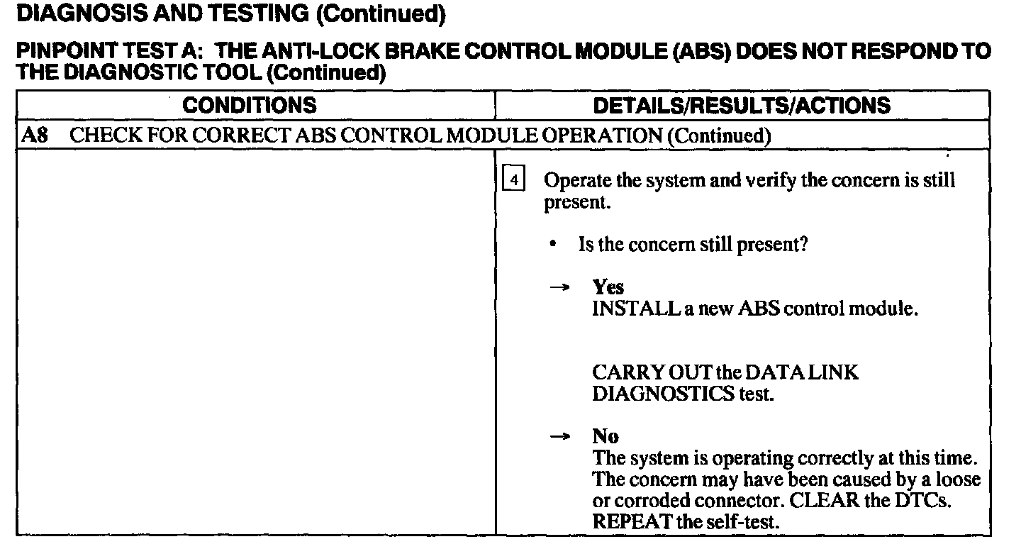Test A: ABS Control Module Does Not Respond to the Scan Tool