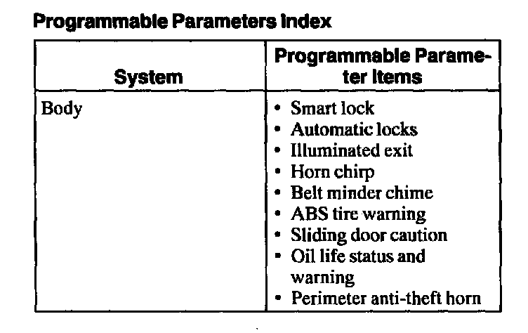 Programmable Parameters Index: