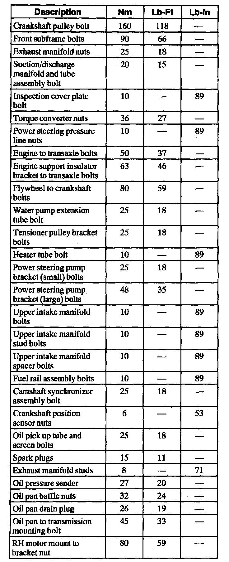 Torque Specifications