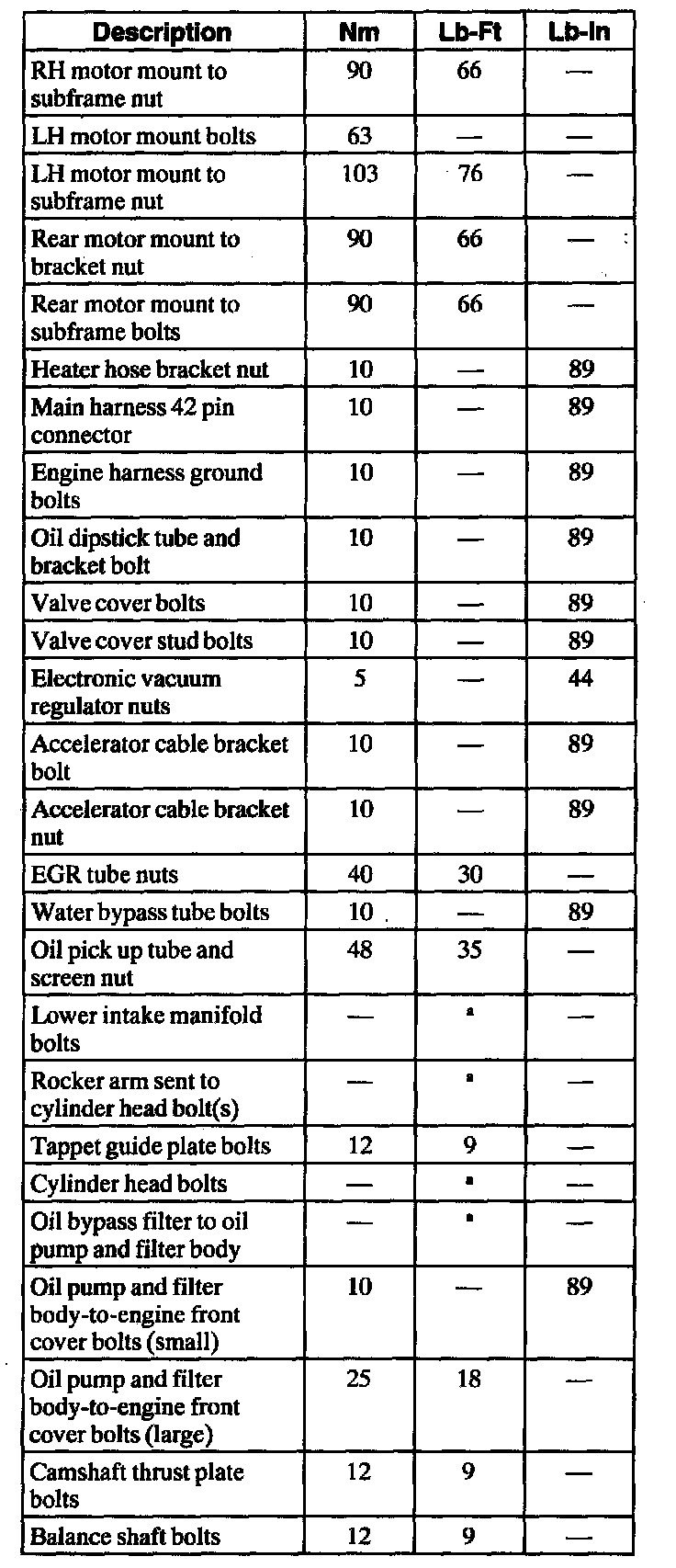 General Torque Specifications