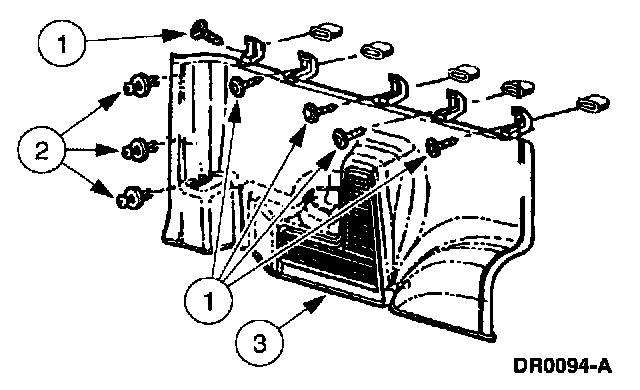 ^ To install the rear lower body side trim panel, start with the clip to the heater housing, then snap the trim panel into the panel clips.