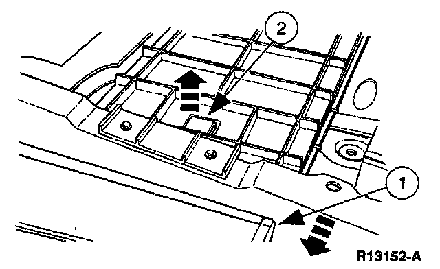 4. NOTE: Use the following steps to remove the passenger under-seat storage housing.