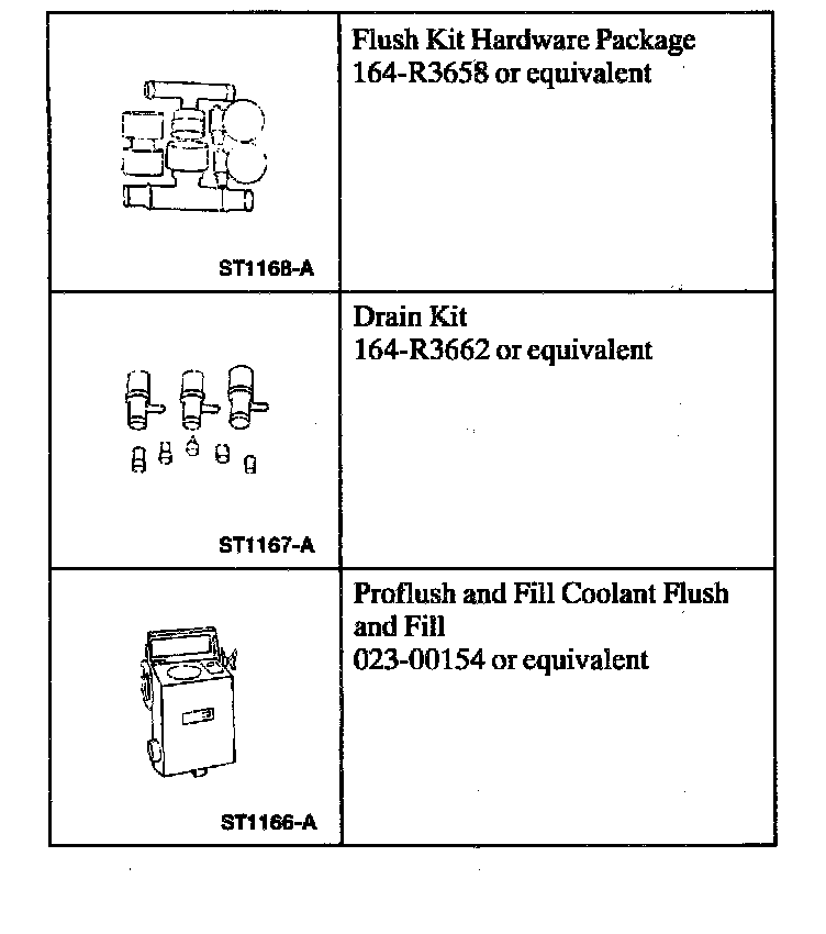 Use cooling system Flush-All, Flush Kit Hardware Package and Drain Kit to flush the engine and radiator.