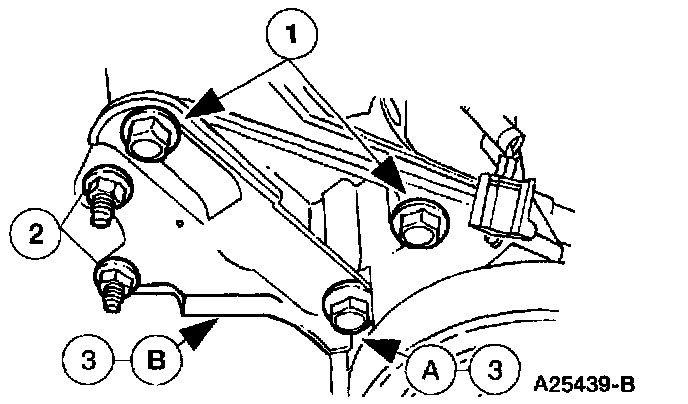 3 Loosen the remaining (A) bolt until the (B) A/C compressor mounting bracket and power steering pump are free from the LH cylinder head. Support the A/C compressor mounting bracket and power steering pump and position aside.