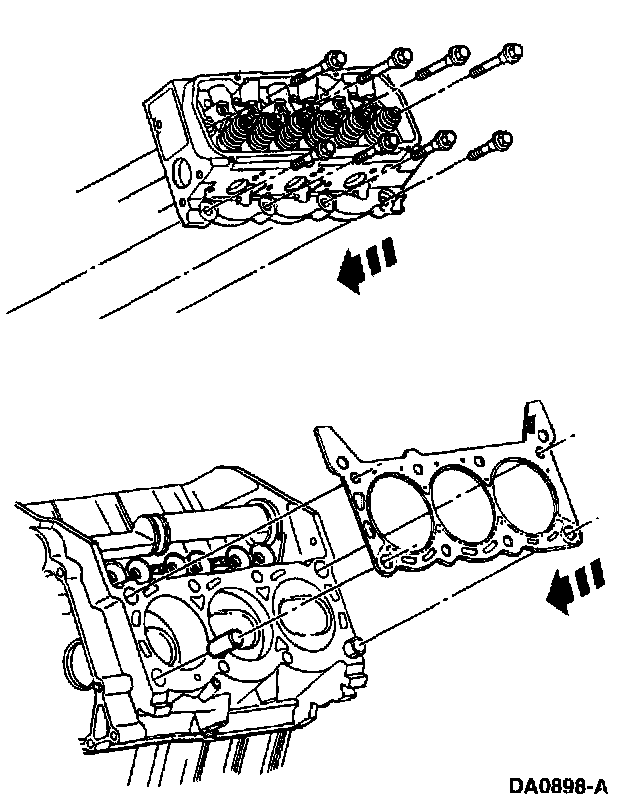 14. Remove the cylinder head and the head gasket. Discard the head gasket.