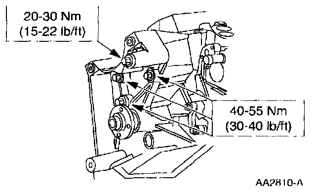 1 Position the A/C compressor mounting bracket and power steering pump.